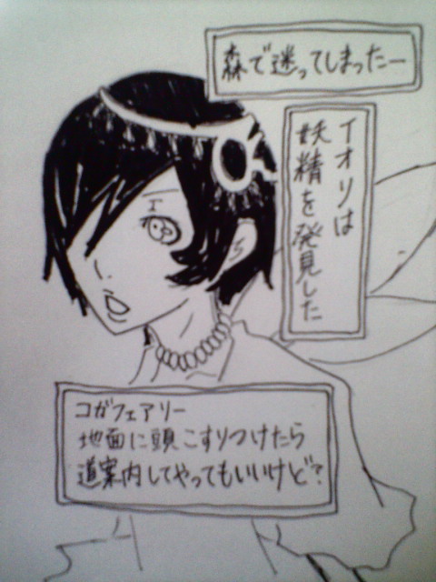 道案内妖精。でもエラそう。実際飛ぶこと自体メンドクサイので案内ついでに肩に乗っときたいだけ。 そういえば、絵チャのとききしかさんが描かれた瓶詰め妖精順平はかわいかったなぁ…vvv