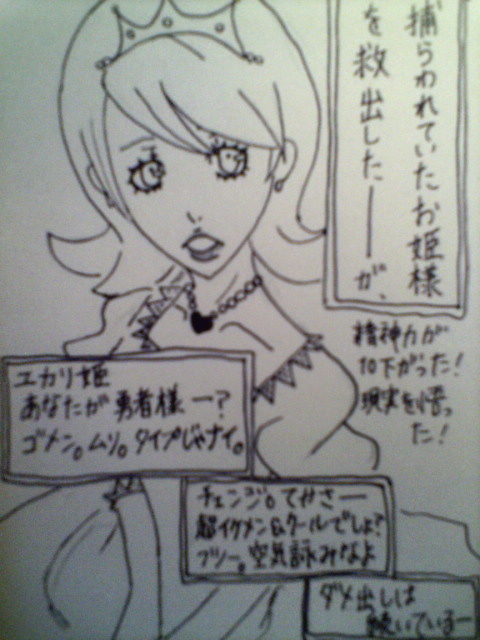ウタタネノヒトリゴト。ここは管理人・ウタタネが独り言を書き連ねているブログでございます。 ペルソナ中心サイトなのでブログもペルソナ関係(主に2、3)中心になるかもしれません。最近は鳥海氏関係の語りが多いです。 ※キーワード検索で来られた方は上記の点と、女性向き表現が含まれる場合があることを注意してください。 サイトURL【http://utatane.ebo-shi.com/】又は右のプロフィールからPAGE | 83 84 85 86 87 88 89 90 91 92 93 | ADMIN | WRITE 2006.10.10 Tue 00:24:08 アップの予定&カテゴリーについて例の第三弾は、後はキレイに塗り直してパシャリするだけなので今日中にアップ出来ると思います。 PR 2006.10.09 Mon 20:24:41 ドラクエ風RPG第二段 P3・ドラクエ風RPG第二段です。では下へどぞ~ おそらく誰よりも魔力強い。そしてインパクトも強い。エロ担当(本人に自覚無し) このあとはテレッテメンバー瀕死にさせられますが、なんだかんだで仲間に 一応あげておきます~ 女剣士・ミツル 魔王なのに何故か自分の能力について教えちゃう漢気溢れるやつ ←を選んだとしても「馬鹿野郎。勇者なんだろ。かかってこい」とか普通に注意してくれます彼は。 一生懸命助けたのにダメだしするスゴイ姫 彼女の力は現実を見せつけてくれます や、ゆかり嫌いじゃないよ、ただゆかりは毒吐いちゃうキャラに勝手になってくれるんです 2006.10.09 Mon 12:34:15 テレッテRPG風にハマってしまいました順平を描いたら全員描きたくなってしまいました。 そして全員描いてしまいました(アイタタタ)。 今回は真田・主人公(古賀)・風花で 勇者・イオリは迷わず斬り→そして戦闘へ→そして仲間へ みたいな? ファイナルダンタジーでいうと赤魔導師とかの方が似合うと思ったんですけどね… まぁ、奴はボクサーなのでこんなカンジで。