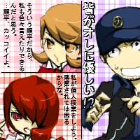 ウタタネノヒトリゴト。ここは管理人・ウタタネが独り言を書き連ねているブログでございます。 ペルソナ中心サイトなのでブログもペルソナ関係(主に2、3)中心になるかもしれません。最近は鳥海氏関係の語りが多いです。 ※キーワード検索で来られた方は上記の点と、女性向き表現が含まれる場合があることを注意してください。 サイトURL【http://utatane.ebo-shi.com/】又は右のプロフィールからPAGE | 539 538 537 536 535 534 533 532 531 530 529 | ADMIN | WRITE 2014.07.06 Sun 23:36:48 PQプレイ感想②←あとSDキャラじゃない善&玲も。 公式的にネタバレは…ということなので、核心には触れず、いつも通り箇条書きでプレイされてる方には分かる感じで。 でも映画公開中だってのに公式でP3ネタバレしてるよね…? ※ネタバレ注意(P3シナリオから) ※順平贔屓 ◆3rd stage【放課後悪霊クラブ】 ・うーん、やたらP4メンバーは仲良いをおしてくるな… ・中に入ると、ちゃんと3Dキャラに赤ライト当たってるとか凝ってますね。 ・美鶴もこういうの駄目だっけ?虫は駄目だったけど。 ・まだ美鶴とゆかりってアレだっけ?まぁ10月イベントで和解というか仲が良くなるから、その前じゃ仕方ないとこもあると思うけど、さすがにギスギスアピール過ぎない?屋久島旅行前後ならともかく。 ・ゆかりと順平との会話。順平は他人の分析が得意というか、意外とちゃんと見てるよなぁ。 ・順「大事な人助けてったら、そのうち世界だって救えちゃうだろ?」 …え、なにこのイケメン…真面目な話は順平らしくないけど、こういう考えは凄く順平らしいと思う。 ・FOEマジで勘弁。追いかけてくる系マジで勘弁。唐突に飛び出てくる日本人形マジNG。 最終的に、追いかけてくる日本人形に苛々して倒しちゃうという。謎解きもクソもないね。 ・鼻眼鏡侍!でもゆかりにはウケない。 ・女子の料理力…P4メンバーは直斗以外全滅だけど、P3の風花だけ異常なのが禍々しさを際立たせてますよね。この時って荒垣さんも順平も風花のヤバさに気付いてるんだっけ。ヒソヒソ声で恐怖してるのが両者共に可哀想。 ・陽介の胃がヤバイ。美味しい鍋作ってあげたときの凄い喜びようが逆に哀愁を誘う。 ・ここで2年時間軸がズレてるのが発覚。 ・P4主人公の迫真な先輩呼びにさすがの順平も恐怖。 ・美鶴が怖がるというレア感。 美「そんなワケにゃっ…ないだろう!」あざといわーさすが桐条先輩あざといわー。 ・順平アワーは鳥海さんの声があっての魅力だというのに…ここにボイスつけないとかスタッフは分かってない。 ・メンバーがはぐれて玲ちゃん操作。 ・「グーはやめろって…!」人をグーで殴るって相当だよね。でも怖がってる時にからかわれたらイラっとする気持ちは分かる。基本順平は和ませようとして言ってるんだけどね。 ・皆のために頑張る玲ちゃん。かわいそうに…でも奮闘する姿は可愛い。この辺から玲ちゃん好きになってきた。 ・ここでカードは医者が持ってるとか理解してる玲。伏線入れていくよ! ・初プレイ時。玲の気配だったら分かるとかの台詞のせいで、首輪とか付けてるし善って元々犬か何かじゃないかと勘繰ってしまった。 ・よしよし(頭撫でた)したら善めっちゃ睨んでくる…そういうの興味なさそう知らなそうにしといてめっちゃ玲ちゃんに気ィありますやん… ・「パーもやめろっての!」こう見ると泣きごと言ってないし、やっぱりP3P4男性陣は何だかんだで強いのね。 ・今更だけど、順平の呼び方って、ゆかりだけ「ゆかりッチ」なんですね。あとは、りせっち、なおっち、オレっちで平仮名なのに。 ・トータル心拍数(笑)何やってんのかと。 荒垣・完二の鉄の心臓っぷり。直斗に褒められてよかったな完二!おいイチャイチャすんな。 ・ボス戦ホラー過ぎィ!美鶴さんも大絶叫のキャラ崩壊っぷり。いやそりゃこんなサイレントヒルのキャラみたいなの出てきたら怖いけど。 ・気を遣ってる、かぁ。確かに台風の後色々あって信頼関係築くからこの時点ではなぁ。 ・ベルベット姉妹をエスコート。どちらにも愛想を振りまいていくスタイル。長い鼻の唄合わせてくれませんかねぇ… ・それにしてもエリザベスのキャラ変ったよなぁ…P3Pでテオが生まれてから余計に。元々破天荒なところはあったけど、何ていうか…もうちょっとこんな我が強くなかったというか、淡々と役目をこなしつつ、真面目にお茶目してるというか、そんな初期の方がどちらかというと好きなんだけど。まぁ恐らくP4で後付け的に姉妹いる設定にしたからキャラ付けしないといけなかったんだろうけど。 ◆4th stage【稲羽郷土展】 ・お祭り!ソイヤ!この雰囲気いいよね! ・コロちゃんの無敵ぶり。さすがの美鶴も散歩を許可するレベル。 ・順「何がちひれちゃうんスか!?」 ・第二夜になった途端…幕に尻って男尻って…ホントにアッ―!トラスなんだから… ・順平がキャップ脱いだ!?結構モーション豊富ですよね。 ・ちなみにP3メンバーの血液型 ゆかり・順平→B、美鶴→O、